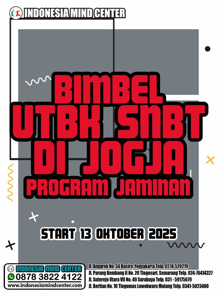 Utbk snbt adalah ujian tulis berbasic computer. Dimana utbk snbt ini menjadi syarat bagi adik adik yang akan melanjutkan pendidikan ke perguruan tinggi negeri. Dalam tahun ini utbk snbt berbeda dengan tahun sebelumnya. Materi yang di ujikan hanyalah tes potensi skolastik, Penalaran matematika dan literasi bahasa. Dan berfokus pada mengukur kemampuan kognitif siswa. Yang bertujuan mampu memprediksi siswa menyelesaikan belajar di perguruan tinggi dengan baik dan tepat waktu, serta memberi kesempatan kepada siswa untuk mengikuti tes secara fleksibel. Baik di kota besar jawa seperti jogja, Surabaya, malang, jember, semarang, solo, purwokerto, bandung, Jakarta, tangerang, bekasi, depok, bogor dll. Adik adik dapat mengikuti ujian sesuai yang terdekat di kota anda.